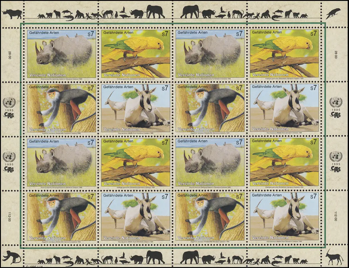 Nations unies Vienne 180-183 Espèces menacées III - Faune 1995, Bogen ZD **