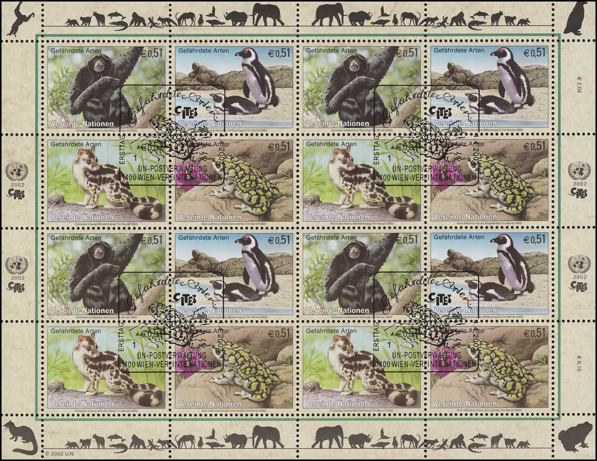 Nations unies Vienne 357-360 Espèces menacées X - Faune 2002, Bogen ZD ESSt