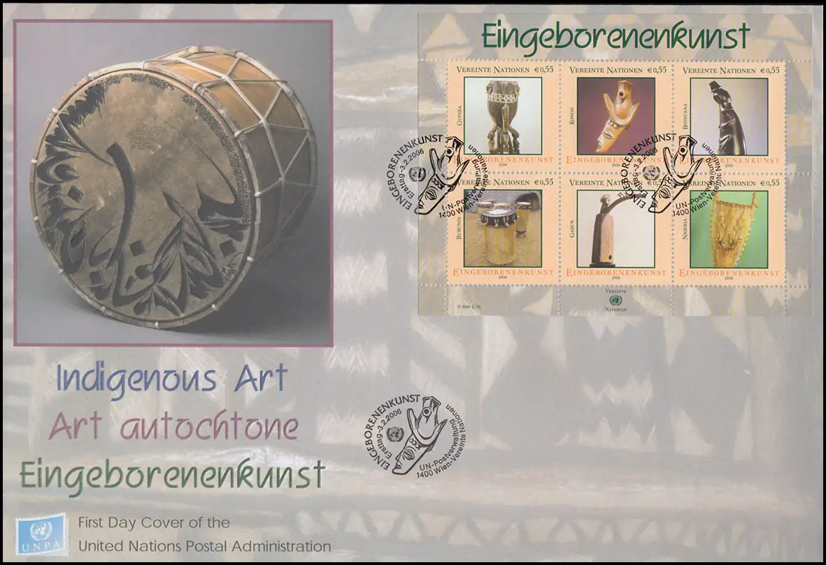 Nations unies Wien Block 20 Instruments de musique africaine: Bloc sur les bijoux FDC WIENNE 2006