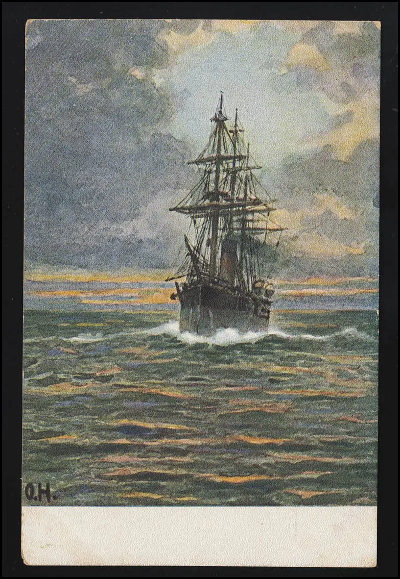 Navigation Fregatte Voilier trois-masters, artiste signé O.H., non utilisé