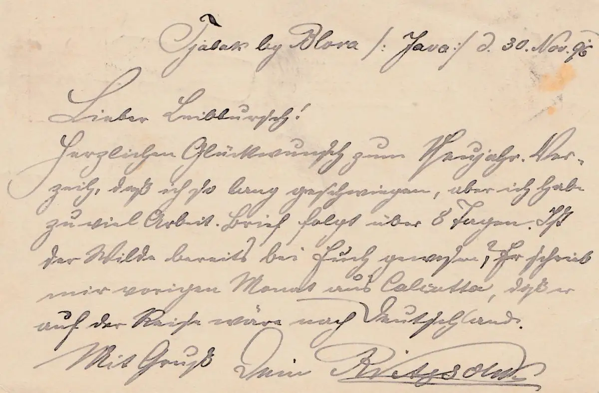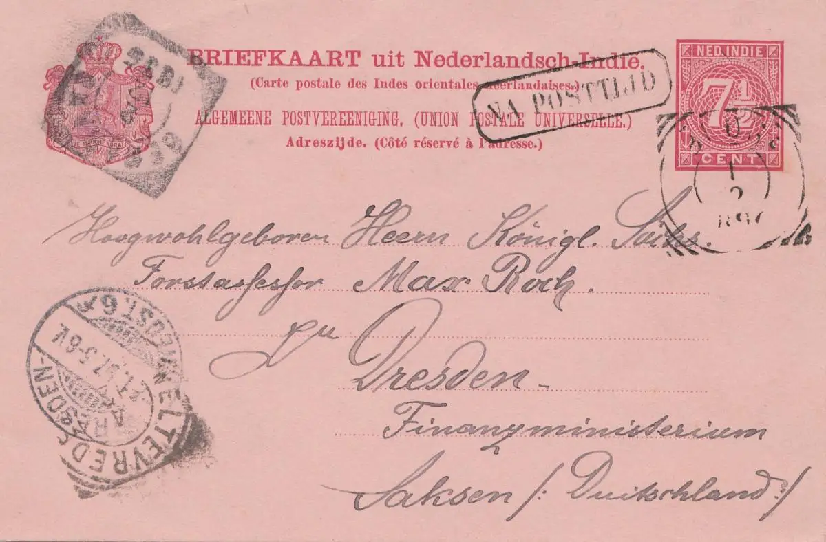 Ned. Indie 1896: post card Weltevreden to Dresde