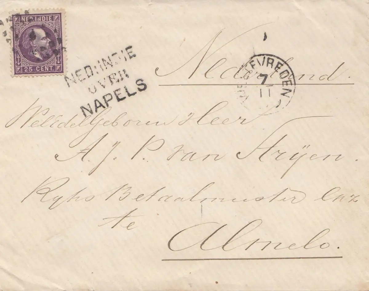 Ned. Indie 1911 Worldevreden via Naplels to Almelo