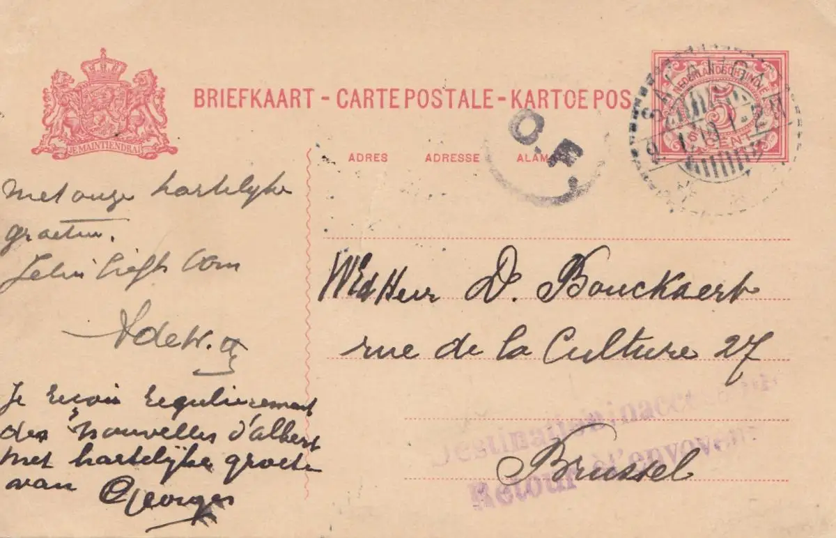 Ned. Indie 1918: post card Salateiga to Brussel - Retour