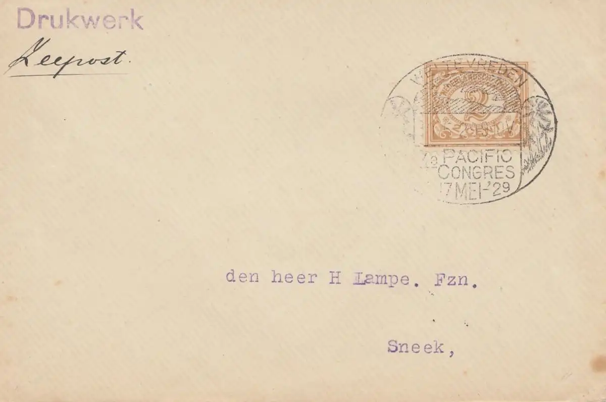 Ned. Indie 1929: printed matter Weltevreden to Sneek