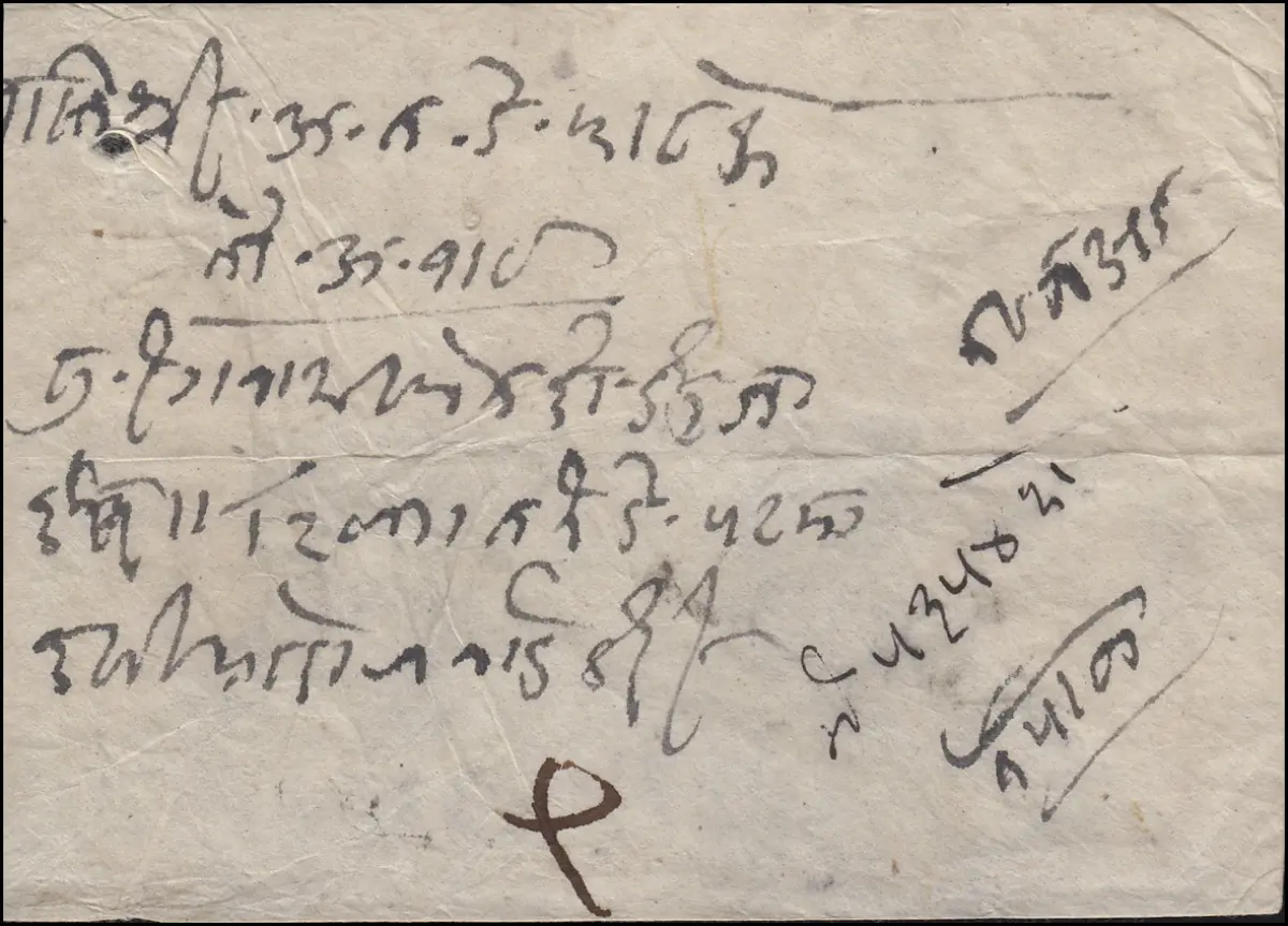 Népal Vorphilatelie Lettre de papier de riz, cachet arrière