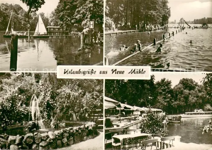 Neue_Muehle_Koenigs-Wusterhausen Teilansichten Seepartien Brunnen Terrasse Neue_Muehle postalisch gelaufen 1970 Erhaltung siehe scans [WerneD78] WernPID7