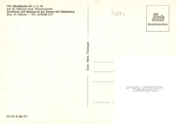Neuhaeusle Gasthaus zur Sonne Neuhaeusle postalisch nicht gelaufen nach 1965 Erhaltung siehe scans [WerneD78] WernPID7