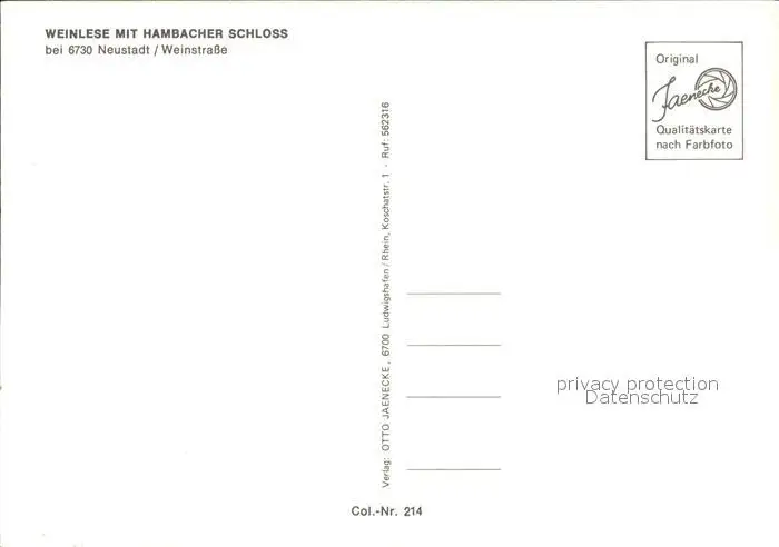 Neustadt Weinstrasse Weinlese mit Hambacher Schloss Neustadt an der Weinstr. postalisch nicht gelaufen nach 1965 Erhaltung siehe scans Alte Ansichtskarte Postkarte WernPID4
