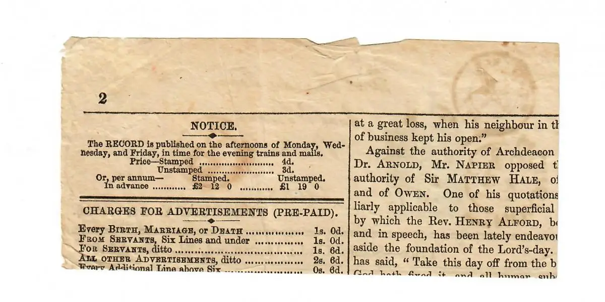 Newspaper Clipping Norwich 1856 to Strasbourg, France