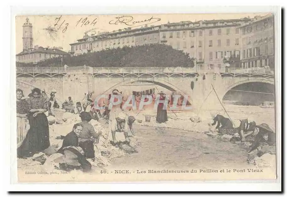 Nice Cartes postales Les blanchisseuses du Paillon et le pont vieux