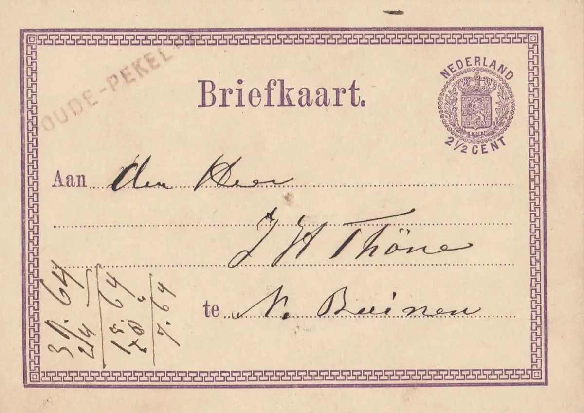 Pays-Bas: 1872: Ganzache - Briefkaart Dude Pekel