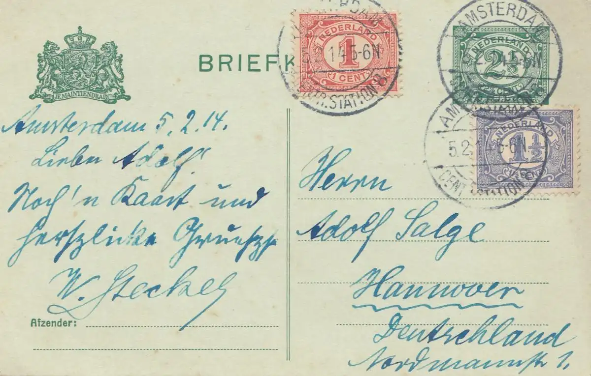 Pays-Bas: 1914: Briefkaart Amsterdam après Hanovre