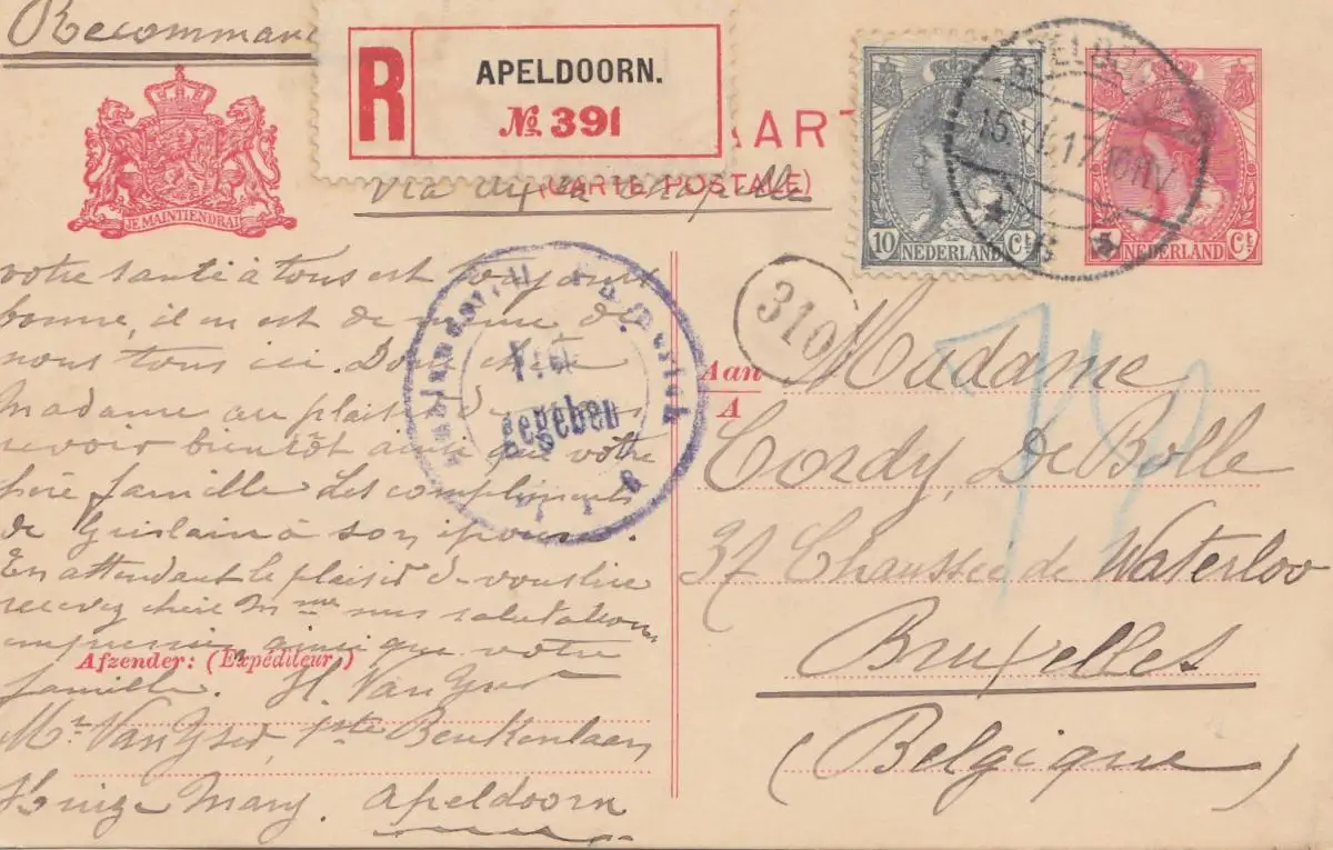 Pays-Bas: 1917:Affaire totale lettre recommandée Apeldoorn vers Belgique-Zensur