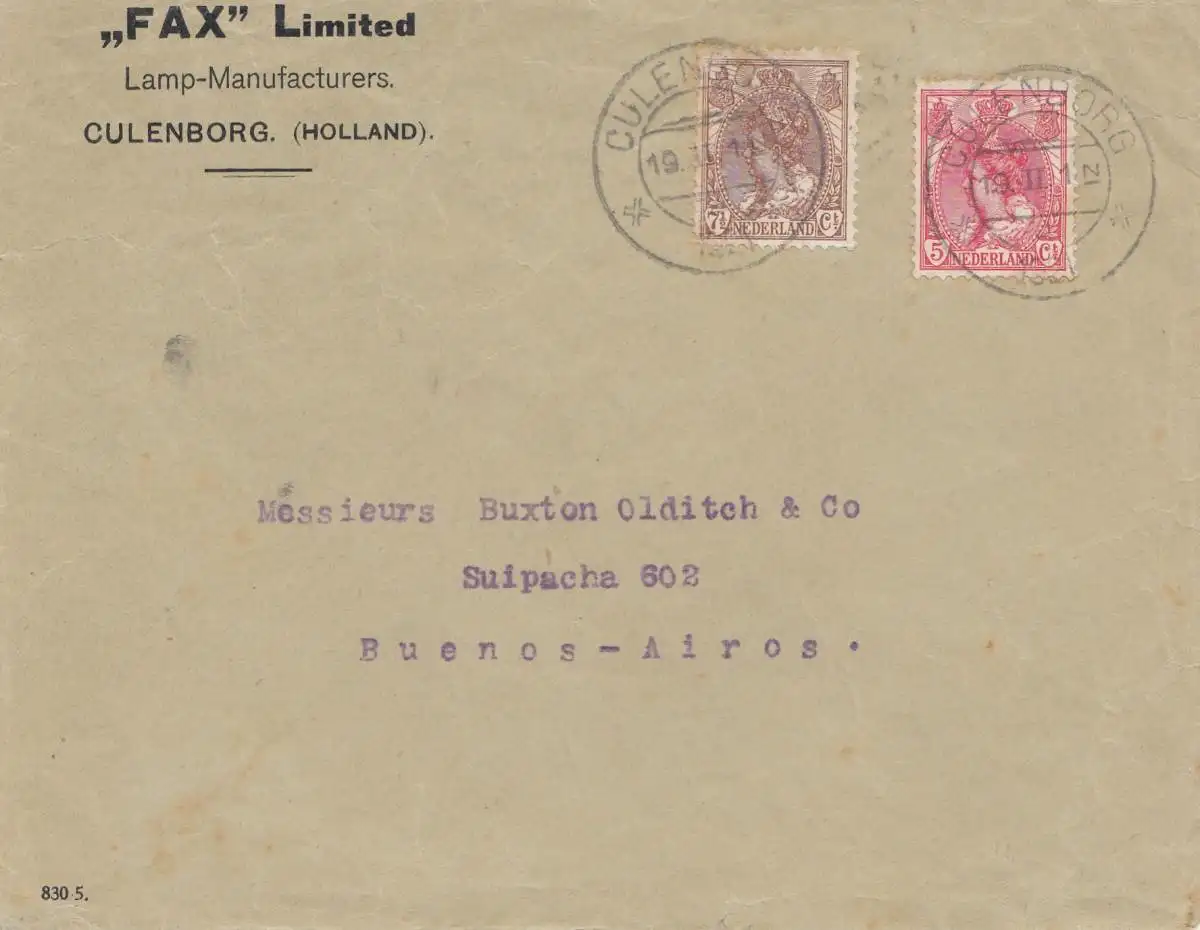 Pays-Bas: 1921: Culenborg vers Buenos Aires