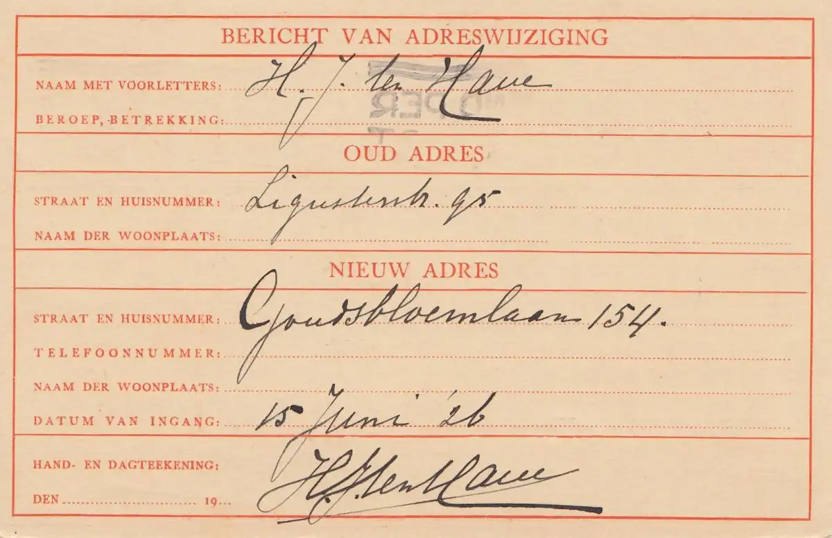 Pays-Bas: 1926: Gravenhage - Affaire - Adreswijziging