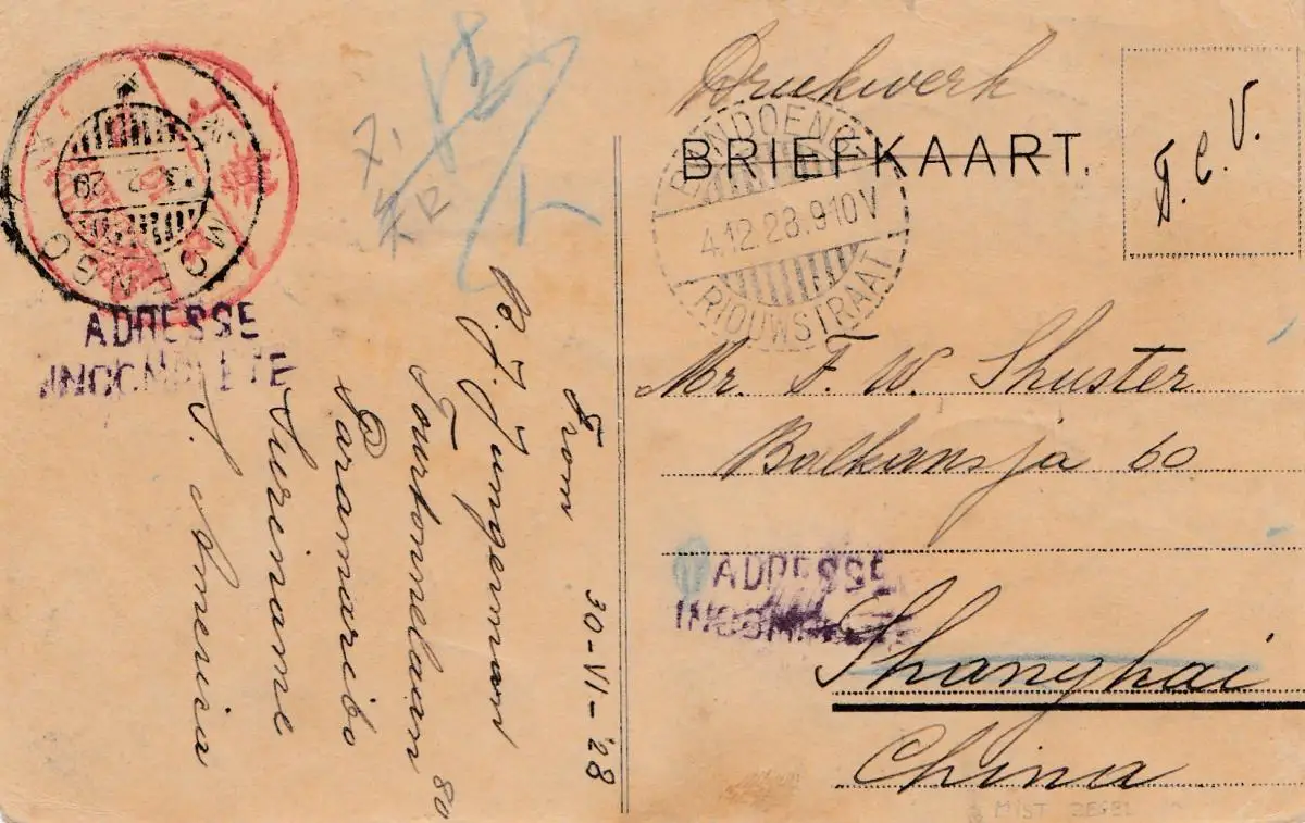 Pays-Bas: 1928: Briefkaart - Imprimer après Shanghai