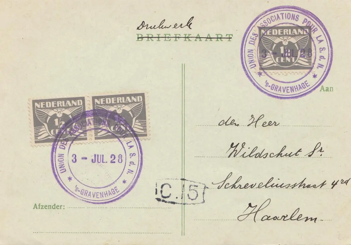 Pays-Bas: 1928: Gravenhage vers Haarlem, Union pour la S.d.N.