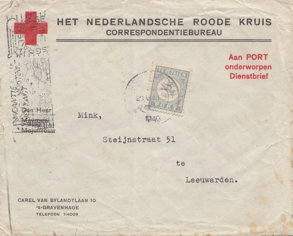 Pays-Bas: 1940: Het Nederlandsche Roode Kruis vers Leeuwarden