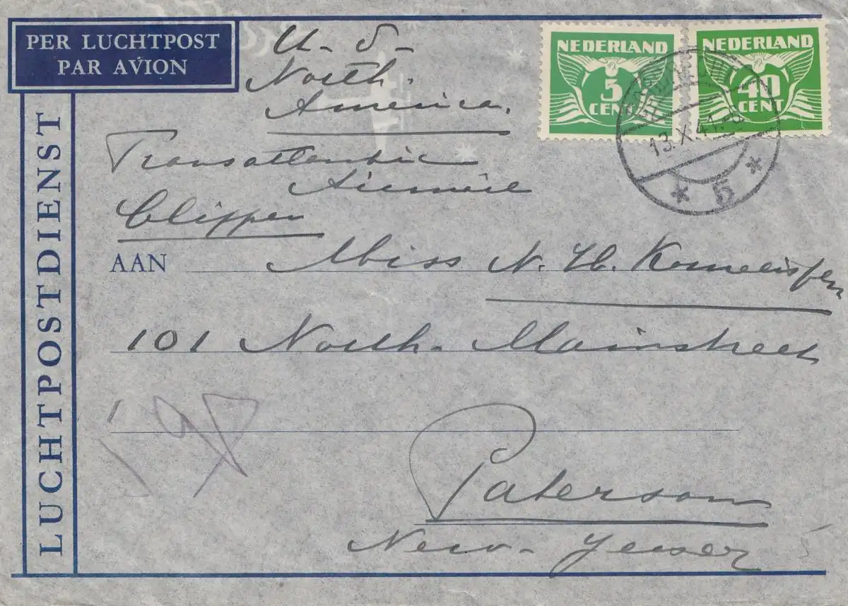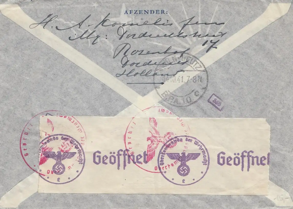 Pays-Bas: 1941: Poste aérien vers les États-Unis: OCW censure