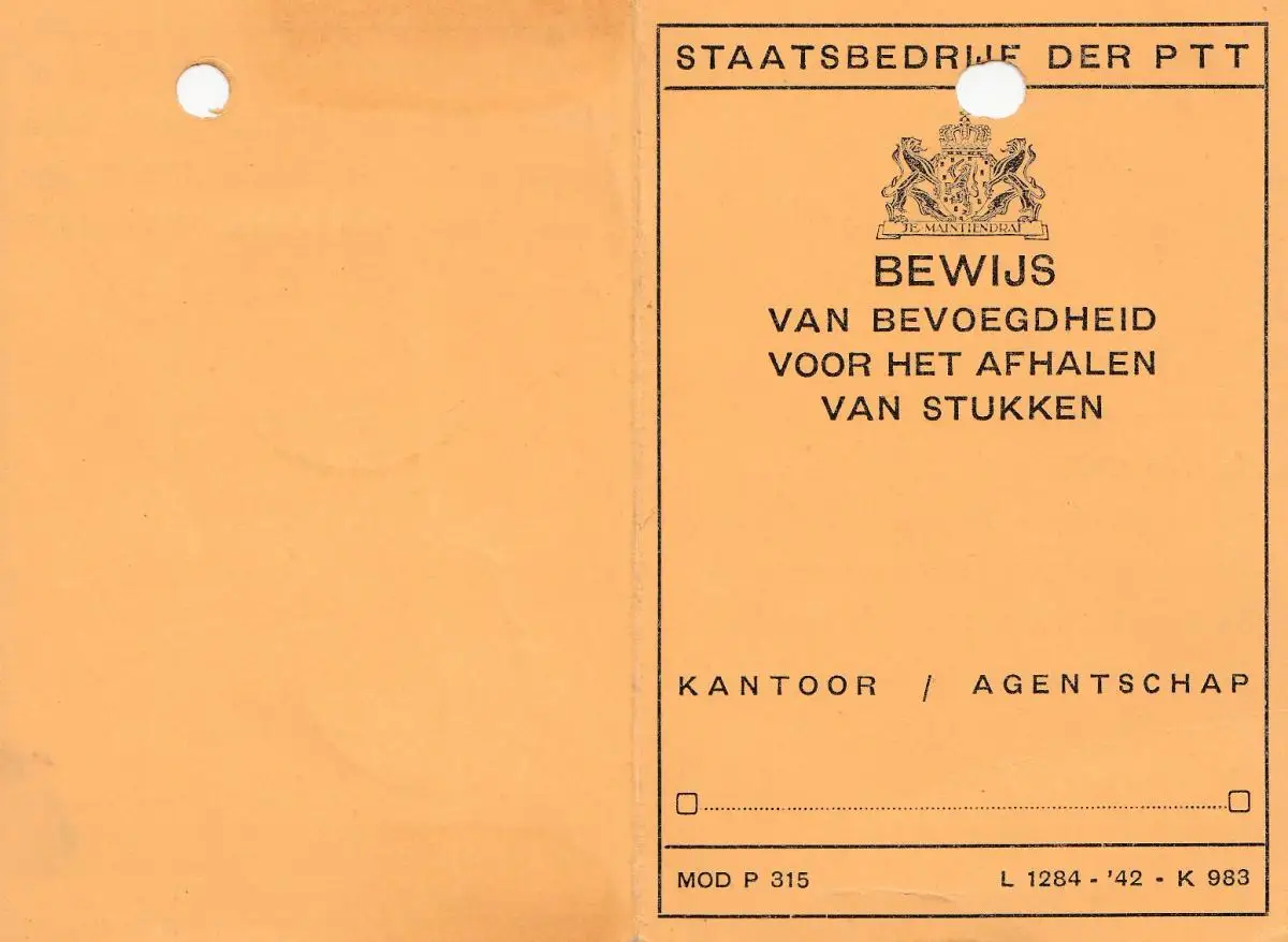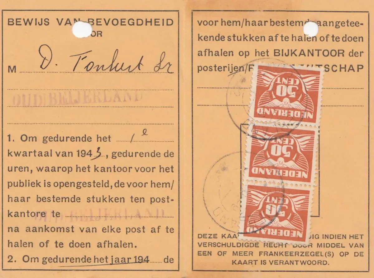 Pays-Bas: 1942: Bewijs van Bevoegdheid voor het afhalen van Stukken