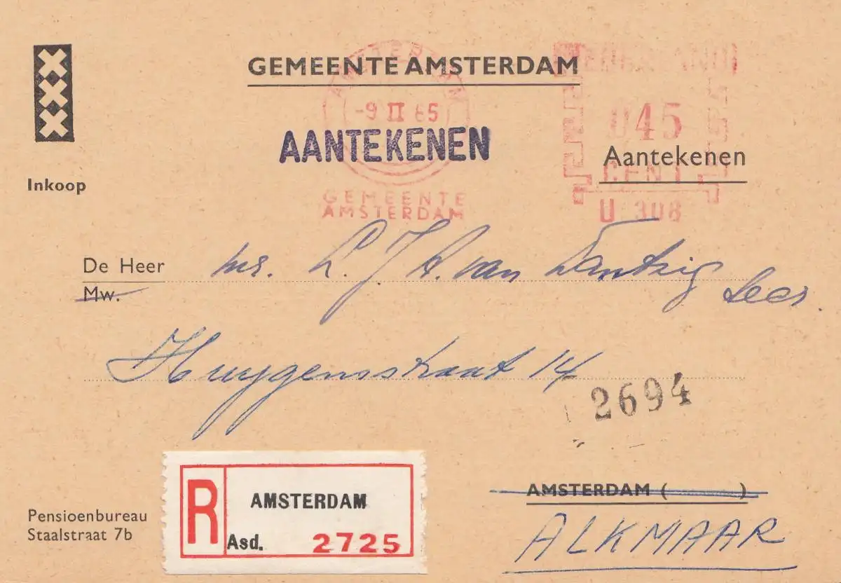 Pays-Bas: 1965: recommandé Amsterdam vers Alkmaar