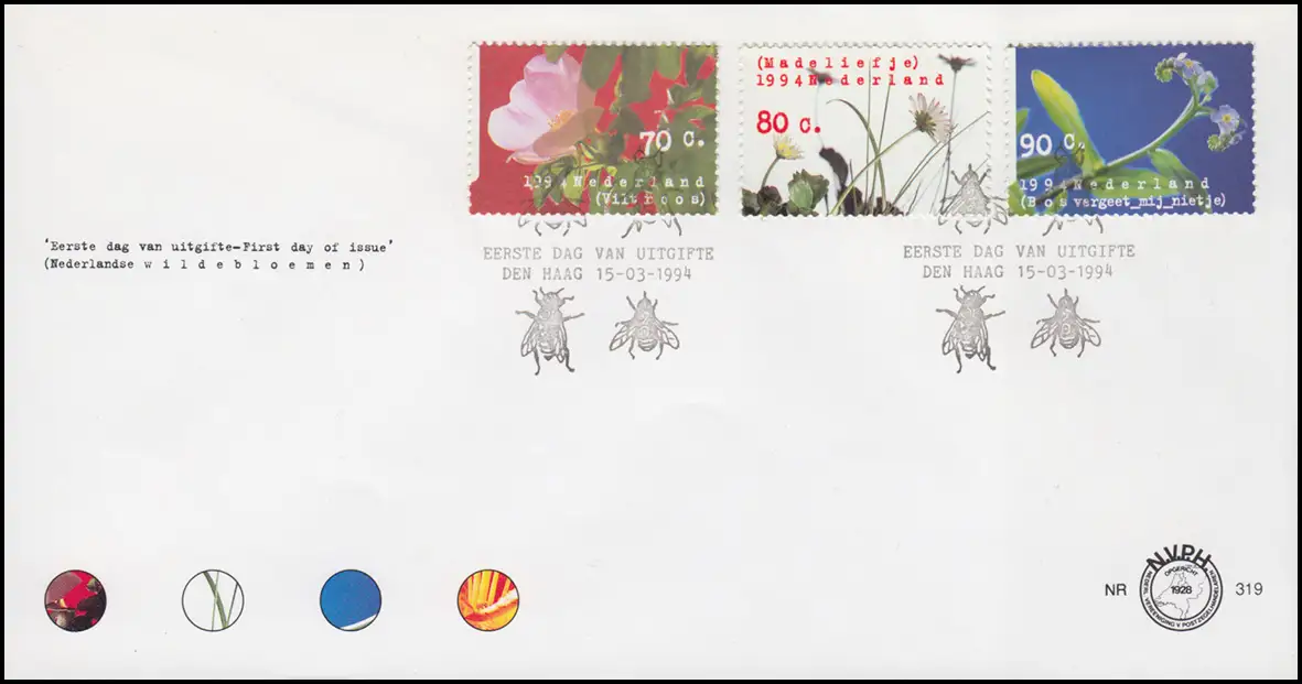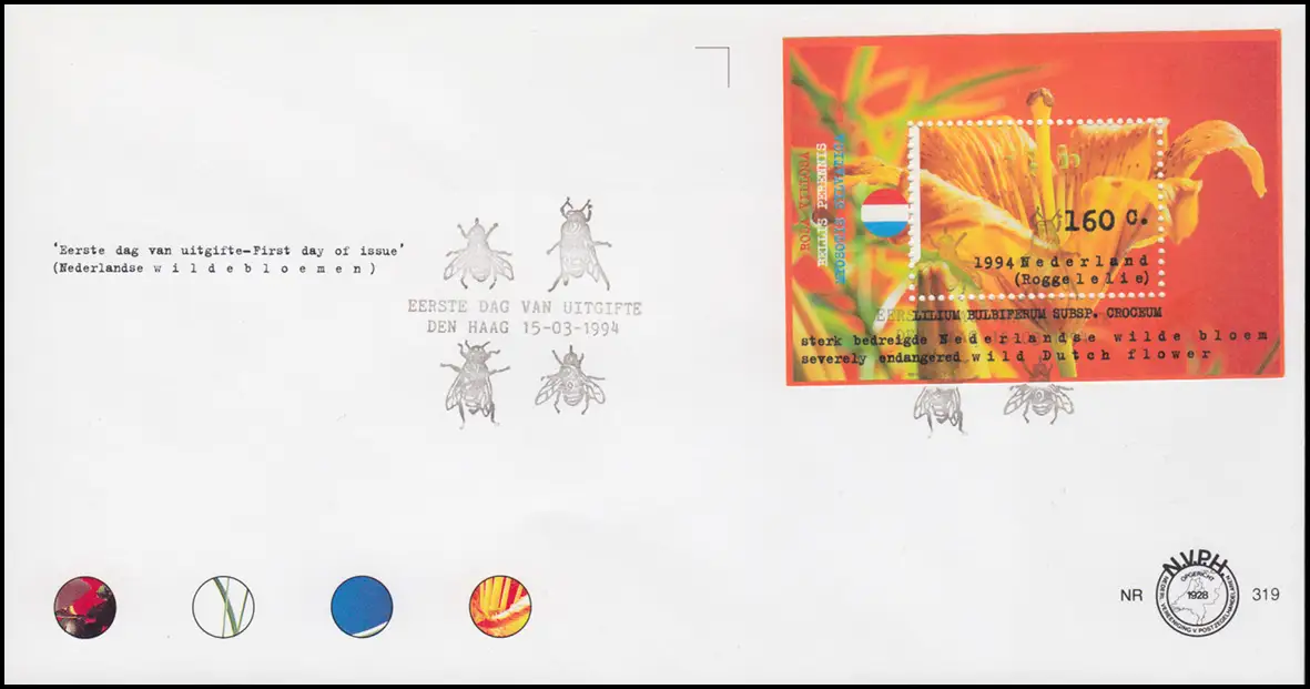 Pays-Bas Fleurs et protection de l'environnement: taux et bloc par rapport à la FDC de bijoux 1994