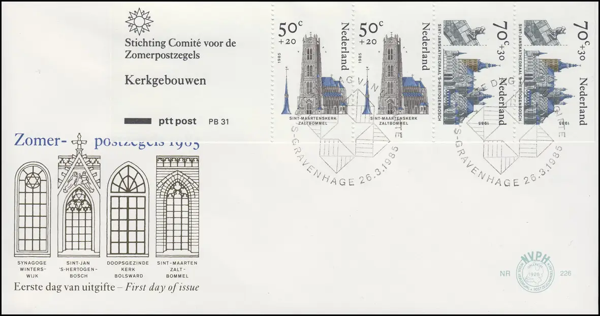 Pays-Bas Bulletin 32 PB 31 Bâtiments sacrés, Bijoux-FDC 26.3.85