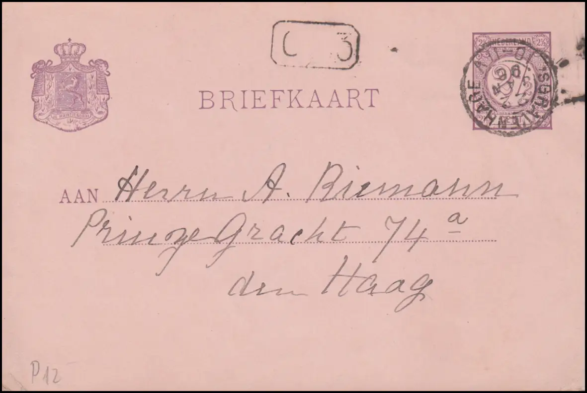 Pays-Bas Carte postale P 12 chiffres Carte locale s'GRAVENHAGE 22.1.1896