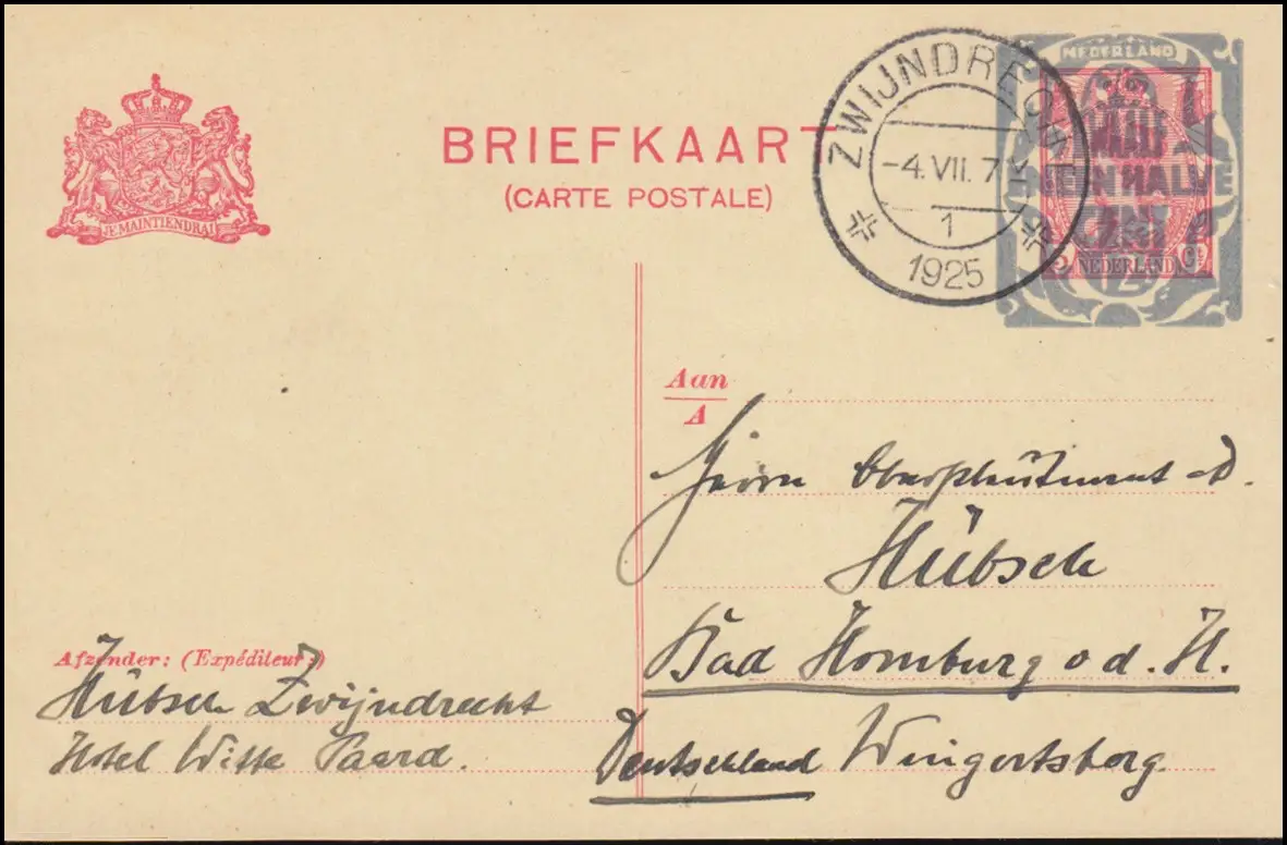 Pays-Bas Carte postale P 148I Édition de consommation de Zwjndrecht 4.7.1925
