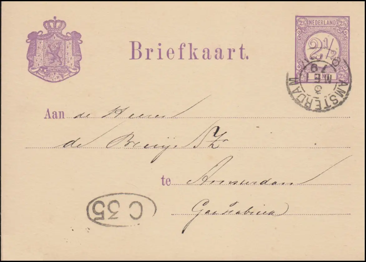 Pays-Bas Carte postale P 8II chiffres d'Amsterdam 3.5.1879
