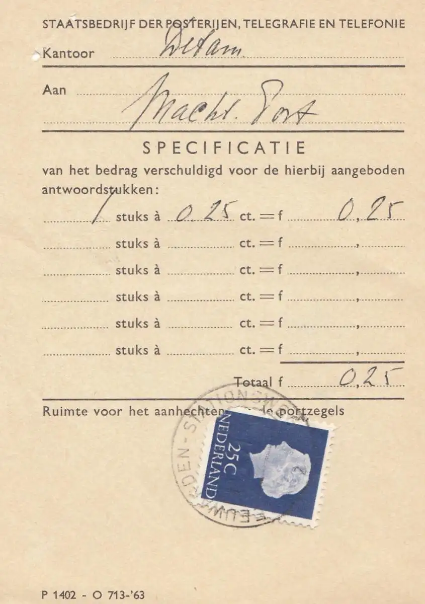 Pays-Bas: Staatsbedrijf der Posterijen, Telegrafie en Telephonie