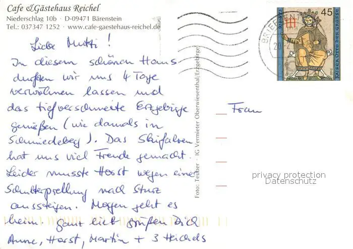 Niederschlag Café Gaestehaus Reichel Niederschlag postalisch gelaufen 2012 Erhaltung siehe scans [FriedD77] Frierer