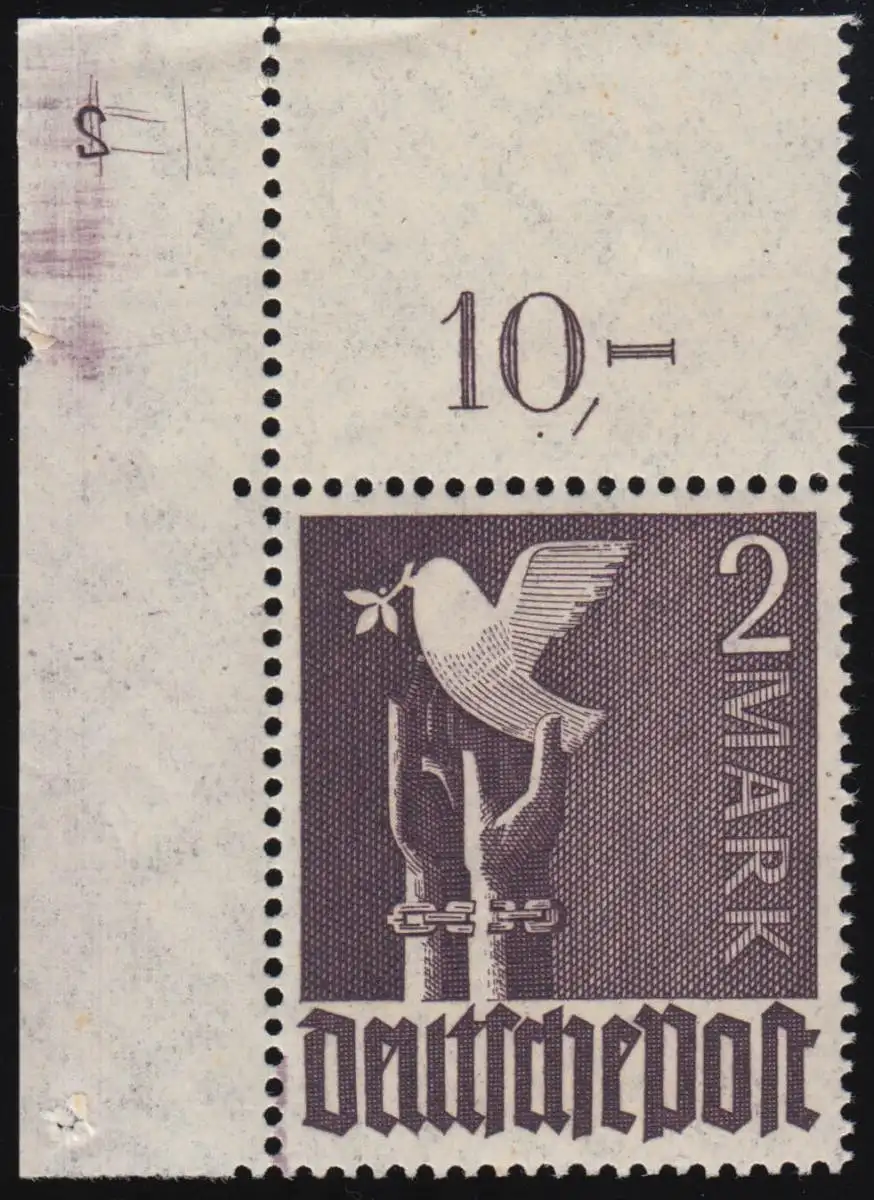 No de pigeon 960Pl. 2 Mark bord d'angle en haut avec le numéro de plaque entier 2, **