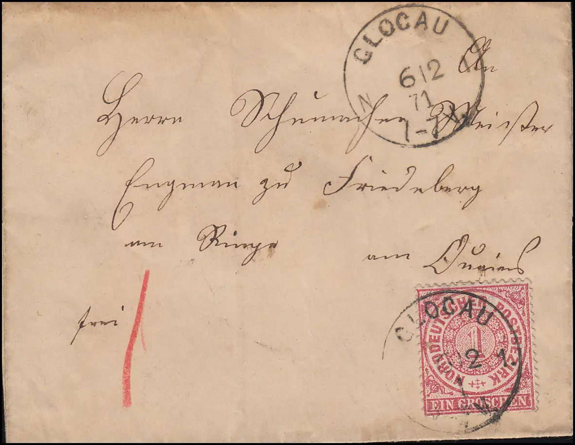 Lettre GLOGAU 6.12.1871 à Friedeberg am Queis