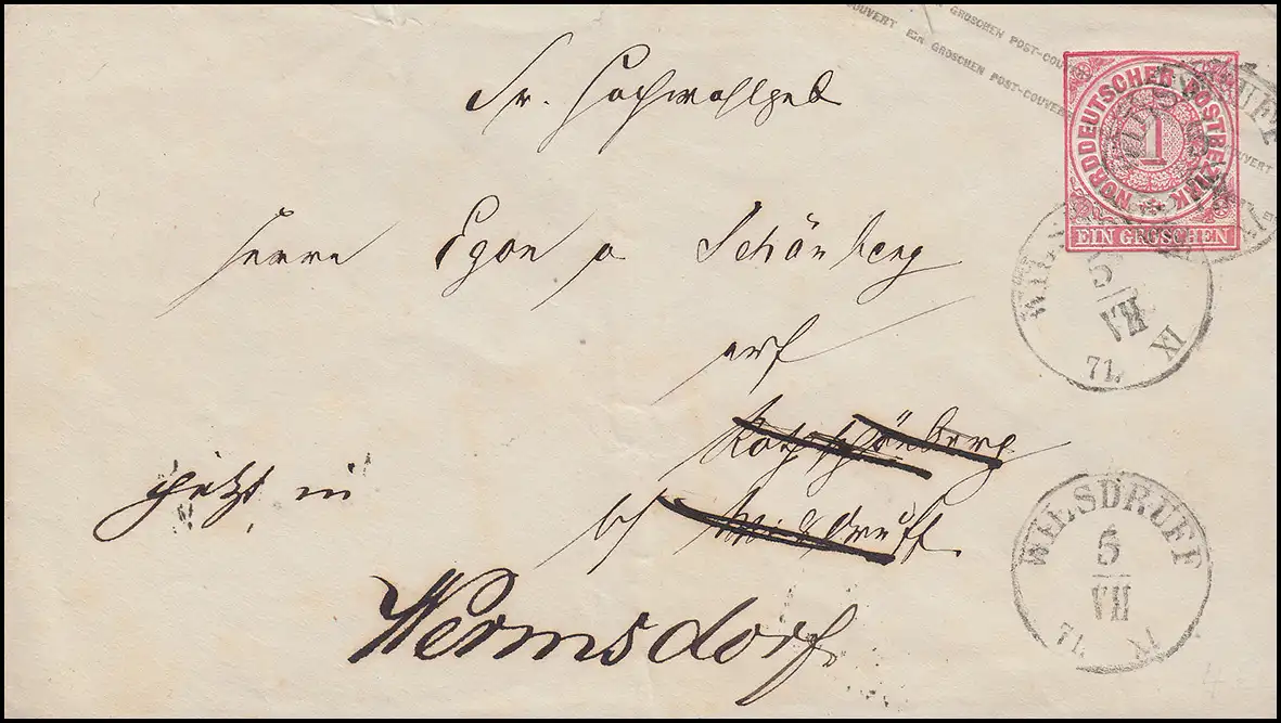Confédération allemande du Nord Couverture U 1 de WILSDRUFF 5.7.71 vers l'édition 6.7 de Vermsdorf.
