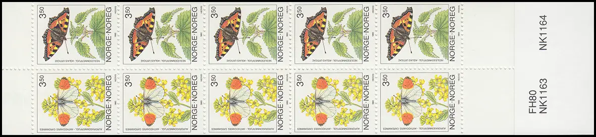 Norvège Carnets de marques 20 papillons Butterflies Suchflries 1993, **