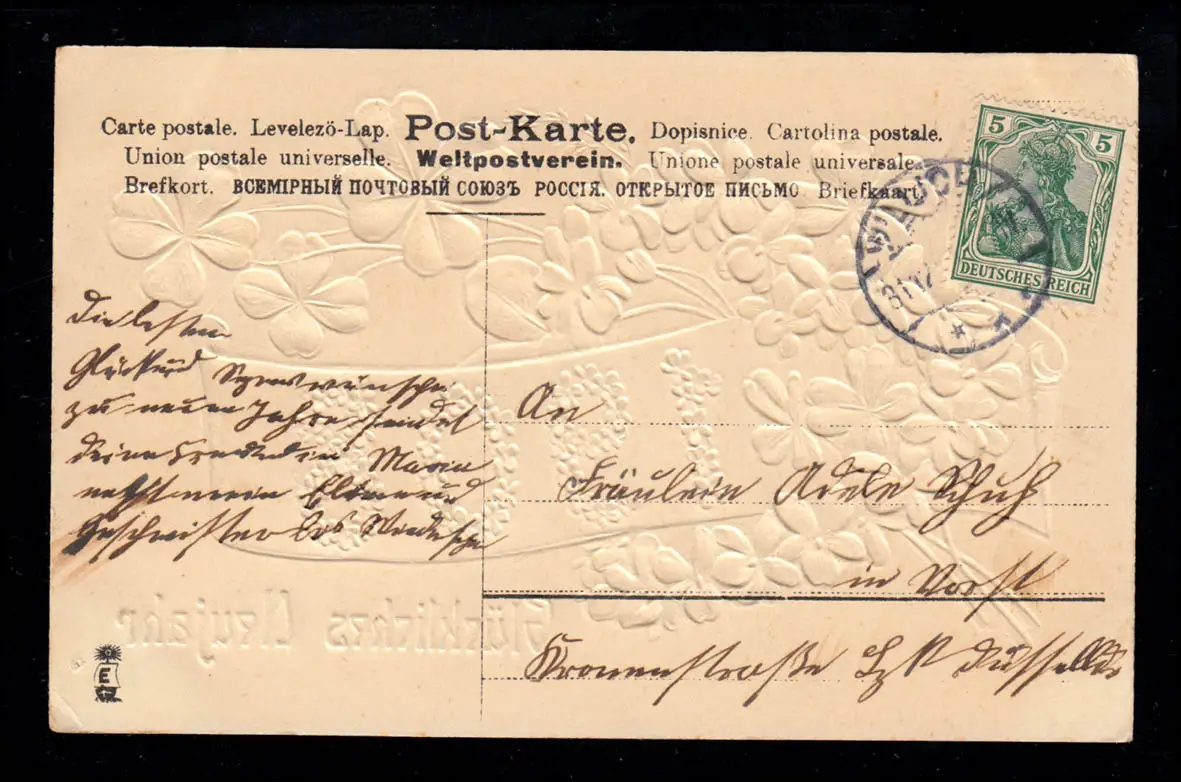 Nouvel An: année 1908 avec violette et trèfle chanceuse, WILLICH 31.12.07