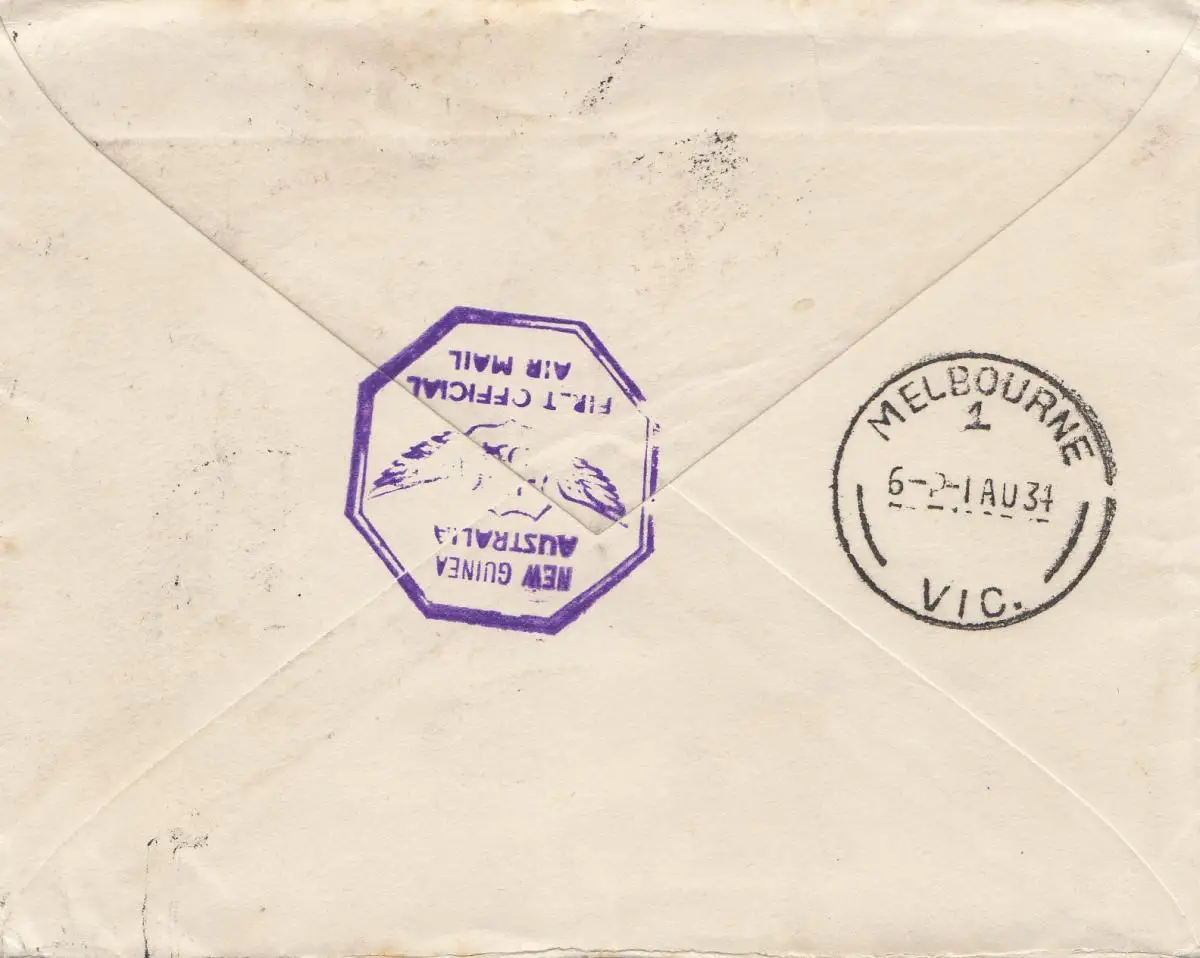 Nouvelle Guinée: 1934: Air Mail Rabaul to Melbourne