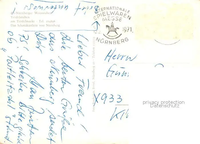 Nuernberg Alt Nuernberger Weinstuben Troedelstuben Nuernberg postalisch gelaufen 1971 Erhaltung siehe scans [WerneD78] WernPID7
