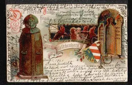 Nürnberg. Gruss aus Alt Nürnberg - Gebraucht. 1901. Briefmarke entfernt. (NPLZ 90400)