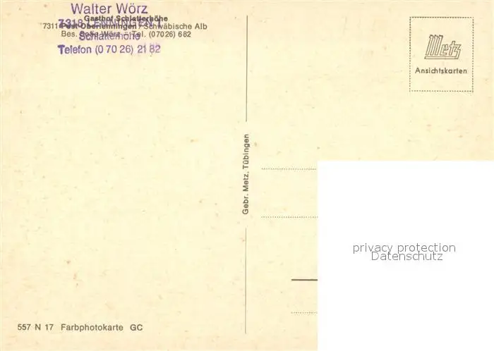 Oberlenningen Gasthof Schlatterhoehe Oberlenningen postalisch nicht gelaufen nach 1965 Erhaltung siehe scans [WerneD78] WernPID7
