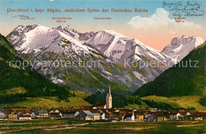 Oberstdorf mit Kegelkopf Krottenkoepfe Fuerschiesser Kraetzer Oberstdorf postalisch gelaufen 1929 Erhaltung siehe scans [WerneD78] WernPID7