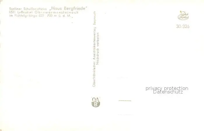 Oberwarmensteinach Berliner Schullandheim Haus Bergfriede Oberwarmensteinach postalisch nicht gelaufen nach 1965 Erhaltung siehe scans [KathaD81] Kathoren