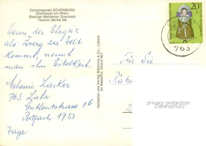 Oberwesel_Rhein Rheinpartie Schwimmbad Campingplatz Schoenburg Oberwesel Rhein postalisch gelaufen nach 1965 Erhaltung siehe scans [WerneD78] WernPID7
