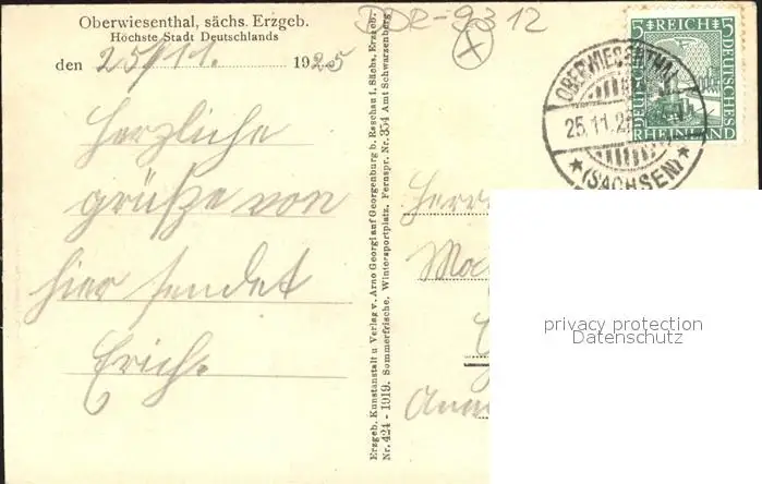 Oberwiesenthal Erzgebirge Fremdenhof Rotes Vorwerk im Winter Oberwiesenthal postalisch gelaufen 1925 Erhaltung siehe scans Alte Ansichtskarte Postkarte Frierer