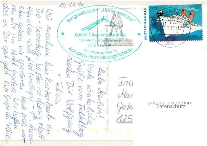 Oberwiesenthal_Erzgebirge Bergrestaurant Himmelsleiter auf dem Fichtelberg Wintersport Oberwiesenthal Erzgebirge postalisch gelaufen 2010 Erhaltung siehe scans [FriedD77] Frierer