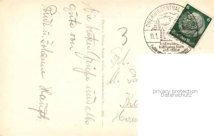 Oberwiesenthal_Erzgebirge Winterpanorama Blick von Himmelsleiter zum Roten Vorwerk Oberwiesenthal Erzgebirge postalisch gelaufen 1940 Erhaltung siehe scans [FriedD77] Frierer