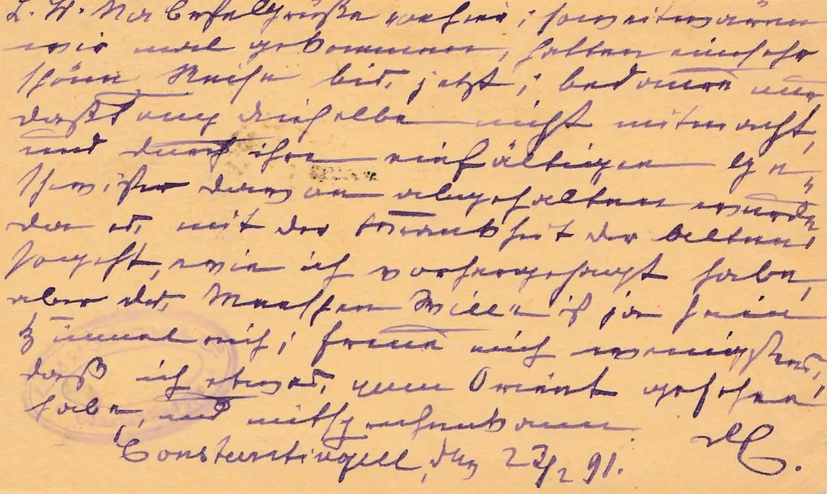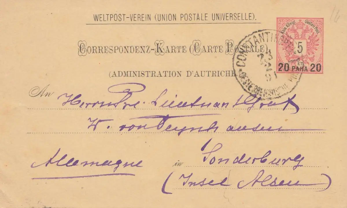 Ö-Levante 1891 Carte postale Constantinople vers Sarzburg, île d'Alsen, ANK Nr. 7b