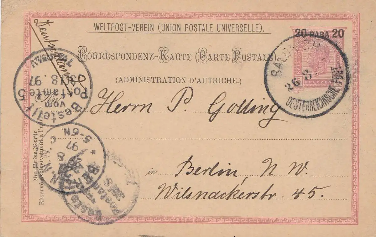 Ö-Levante: 1897: Carte postale Solonich à Berlin