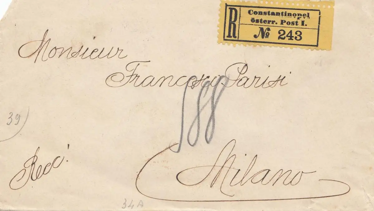 Ö-Levante: 1908: Lettre recommandé Constantinople vers Milano